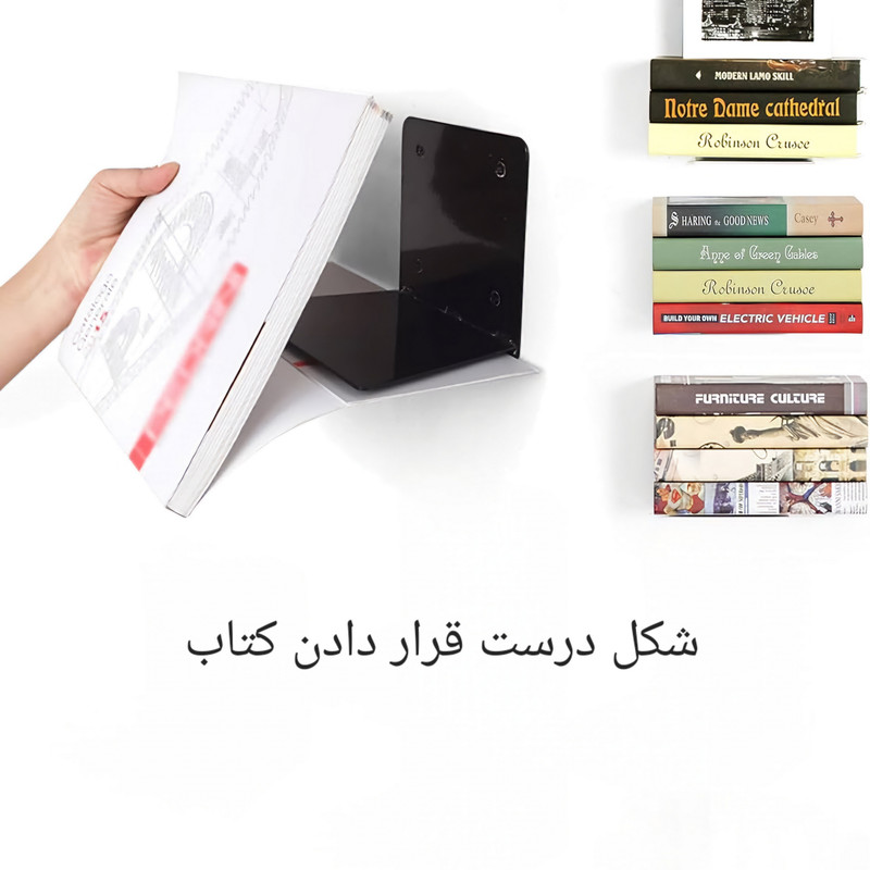 با استفاده از این شلف می توانید یک کتابخانه معلق کوچک و زیبا بر روی دیوار محل زندگی یا کارتان داشته باشید. این شلف از ورق آهنی با ضخامت 2 میلیمتر ساخته شده و با رنگ مقاوم الکترواستاتیک پوشش داده شده است. با استفاده از 4 پیچ به دیوار متصل می شود و تا 12 کیلوگرم تحمل وزن را دارد. سایز این شلف برای استفاده از کتب با اندازه قطع رقعی (A5) و بزرگتر، مناسب است. کتب کوچکتر بر روی شلف قرار خواهند گرفت، در نتیجه از قابلیت مخفی بودن نمی توان به طور کامل استفاده کرد.