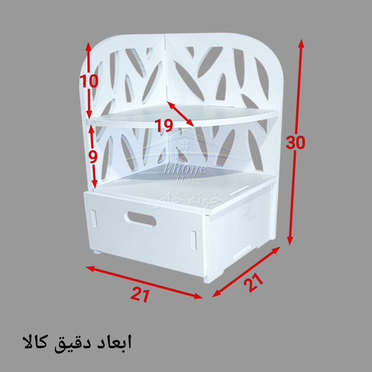 شلف کنجی کشودار مدل برگی محصول ایرانی خونه خاص بوده که از ورق درجه یک پی وی سی تهیه شده است که کاملا قابل شستشو بوده و هرگونه لک و کثیفی براحتی از روی محصول پاک می شود. این محصول نظم دهنده انواع لوازم آرایش ، زیورآلات و بدلیجات ، جا ادویه، لوازم التحریر و سایر لوازم است و دارای یک کشو در زیر کار برای قرار دادن خرده ریزها می باشد. محصول اصلی با ابعاد اصلی و کیفیت عالی فقط با برند و بسته بندی خونه خاص ارسال می شود.