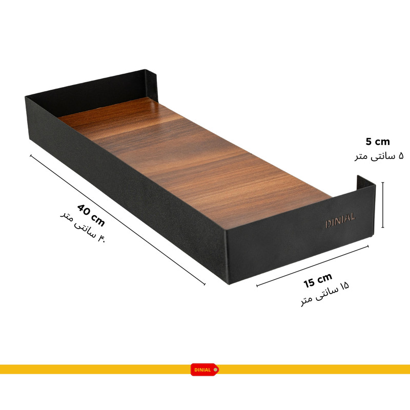 شلف جلو بسته دینیال , یکی از طرح های مدرن و زیبای برند دینیال ساخته شده از چوب ام دی اف با مغز و روکش خارجی , پایه این شلف از فلز با رنگ الکترو استاتیک کوره ای است که همین مورد باعث ضد زنگ و ضد خش شدن پایه شلف می شود , این شلف قابلیت نصب در تمامی محیط ها را دارد , و برای جا ادویه , جا اکسسوری کوچک , جا کلید و ابزار مورد نیاز روزمره , جا لوازم آرایش و ... قابل استفاده می باشد . ابعاد این شلف 40*15 سانتی متر می باشد و نصب بسیار آسانی دارد