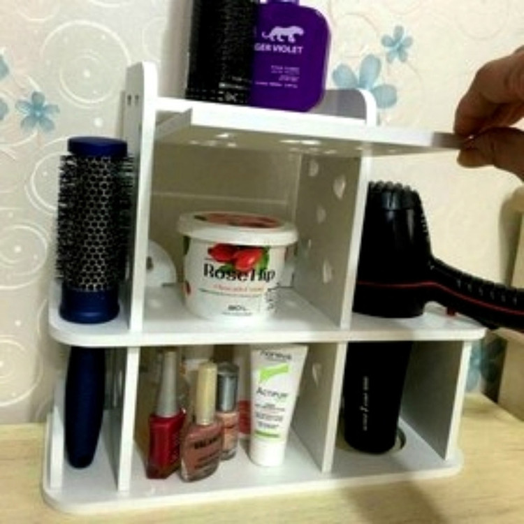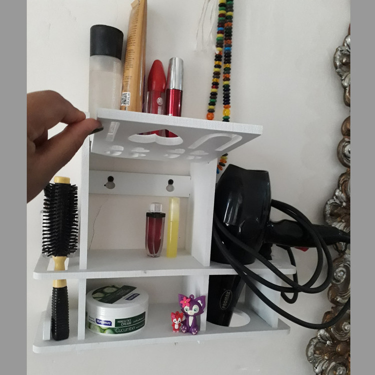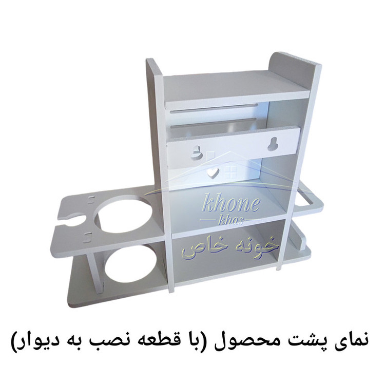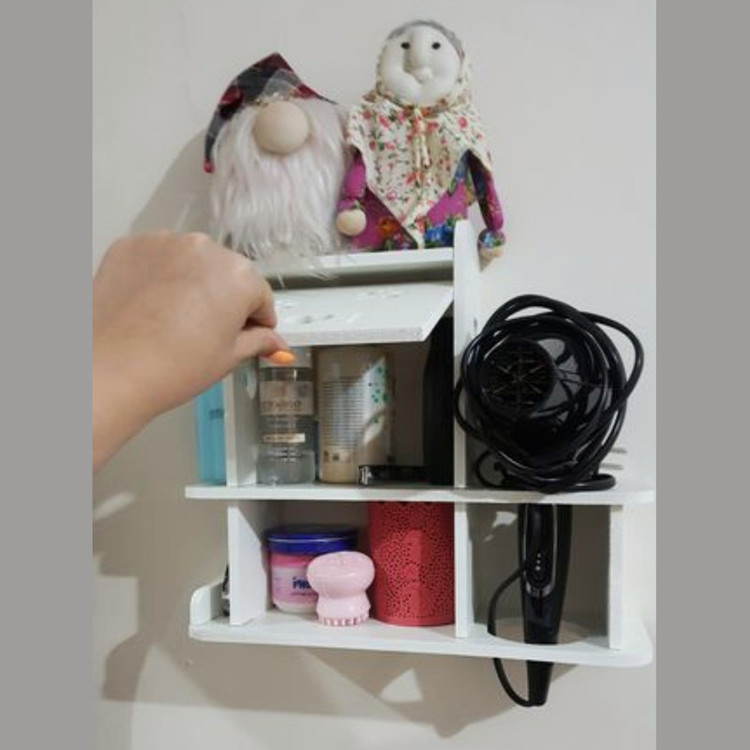 شلف نگهدارنده سشوار خونه خاص از جنس پی وی سی مقاوم و با کیفیت تولید شده که در برابر رطوبت و آب کاملاً مقاوم می باشد ، به طوری که در صورت نیاز می توانید از آن درون مکان هایی با رطوبت بالا نظیر حمام و سرویس بهداشتی استفاده کنید و یا اینکه در صورت نیاز به سادگی آن را بشویید . شلف سشوار دارای یک استند برای نگهداری سشوار در قسمت بیرونی می باشد که به طور کامل آن را پوشش داده و نگه می دارد . در کنار استند که شامل دو سوراخ به قطر 8 سانتی متر با فاصله از یکدیگر می باشند یک حلقه برای نگهداری سیم سشوار تعبیه شده که با استفاده از آن می توانید دوشاخ برق سشوار را مهار و از آویزان بودن و یا حتی آسیب رسیدن به آن جلوگیری کنید . فضای کنار نگهدارنده سشوار شامل دو محفظه درب دار و بدون درب در دو طبقه می باشد که از آنها برای نگهداری وسایل و لوازم بهداشتی در ابعاد کوچک می توانید استفاده نمایید . در کنار محفظه ها نیز یک استند برای نگهداری برس در حالت ایستاده تعبیه شده است.