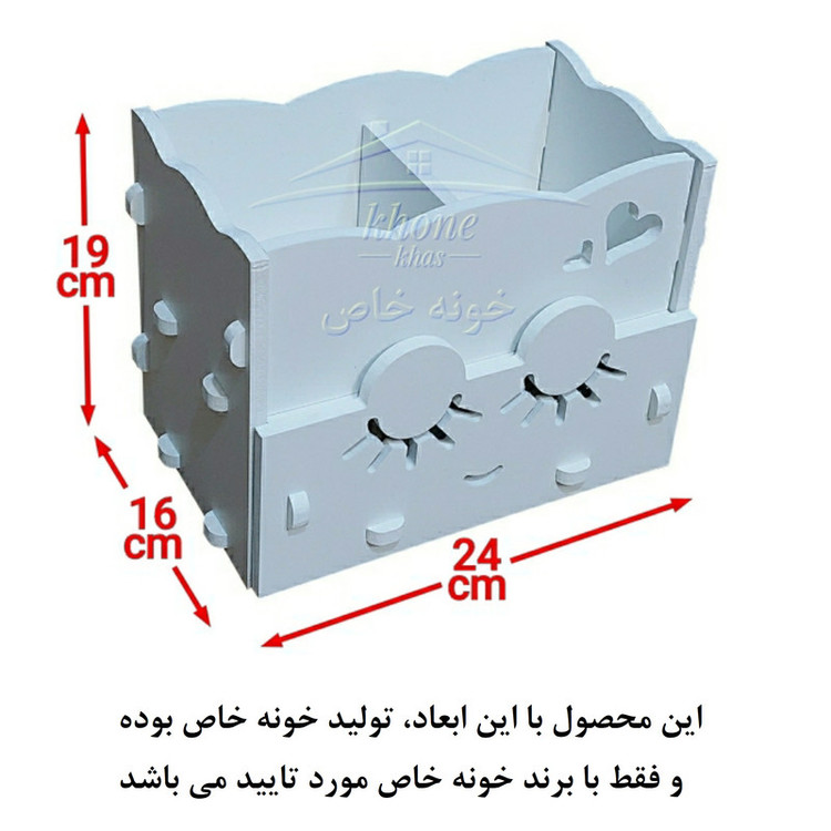 استند لوازم آرایش طرح چشمک محصول ایرانی خونه خاص بوده که از ورق درجه یک پی وی سی تهیه شده است که کاملا قابل شستشو بوده و هرگونه لک و کثیفی براحتی از روی محصول پاک می شود. این محصول نظم دهنده انواع لوازم آرایش از قبیل رژ لب، انواع پنکیک ، پاک کننده های آرایش ،انواع مداد، انواع کرم ها در سایز های متفاوت ، زیورآلات و بدلیجات ، انواع برس و شانه و سایر لوازم است و دارای یک کشو در زیر کار برای قرار دادن خرده ریزها می باشد. حتی این محصول به عنوان نظم دهنده لوازم التحریر دختر خانم ها نیز مورد استفاده قرار می گیرد. محصول اصلی با ابعاد اصلی و کیفیت عالی فقط با برند و بسته بندی خونه خاص ارسال می شود.