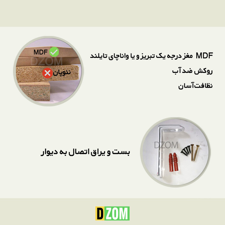 جنس صفحه MDF درجه یک با رویه ضد آب می باشد. طراحی مدرن و سبک مناسب خانه و محل کار
