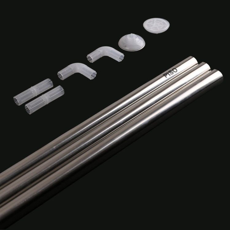 میله پرده (piso) ((پیسو)) مدل U. این مدل میله پرده مناسب برای فضاهایی پیشبینی شده که نیاز به پوشش از 3 جهت وجود دارد.همچنین از این مدل میتوان به بصورت L شکل نیز استفاده نمود.پایه های نصب از جنس ABS ولوله هانیز از استیل ضد زنگ ساخته شده است.پایه ها توسط پیچ و رول پلاک همراه کالا به دیوار متصل میشوند.