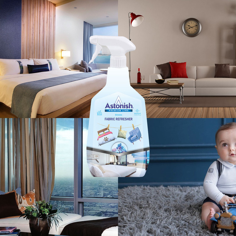 انتشار متداول بوهای نامطبوع مانند بوی سیگار، پخت و پز، تعریق، رطوبت، حیوانات خانگی و ... و جذب مولکولی روی سطوح پارچه ای محل کار و خانه مانند مبلمان، فرش، سرویس خواب، پرده، صندلی خودرو، البسه و تثبیت آن روی سطوح پارچه ای ، فضایی ناخوشایند را در محیط زندگی و کار بوجود می آورد که انرژی محیط را می گیرد. برند آستونیش محصولی به نام خوشبوکننده و بو زدا پارچه و هوا (Fabric Refresher) با حجم 750 میلی لیتر را به بازار عرضه کرده است که با بکار گیری تکنولوژی های میکرو کپسوله (Encapsulation) و تخریب ساختار مولکولی بو های مزاحم (Odor Mask) سطوح پارچه ای که امکان شستشوی مداوم ندارند را بو زدایی و خوشبو کرده و در حالت بعد از شستشو قرار میدهد که منجر به افزایش طول عمر مبلمان و فراهم کردن محیطی تمیز و خوشبو و پر انرژی با ایجاد حس تازگی در منزل و محل کار میگردد.