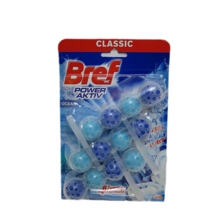 با هر بار استفاده از سیفون دستشویی، آب بر روی قرص خوشبو کننده توالت فرنگی توپی برف Bref با رایحه اقیانوس ریخته و محیط را ضد عفونی و خوشبو خواهد کرد .