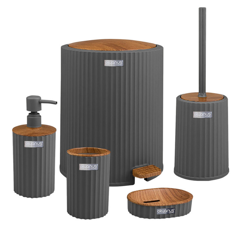 محصول کشور ترکیه - برند کوسوا - مجموعه 5 پارچه متشکل از سطل به ابعاد 26x21x21 سانتی متر ، فرچه 16x11x11 سانتی متر ، جا مایع 12x7x7 سانتی متر ، جاصابونی 12x3x9 سانتی متر و جامسواکی 12x8x8 سانتی متر - جنس مجموعه : آکریلیک
