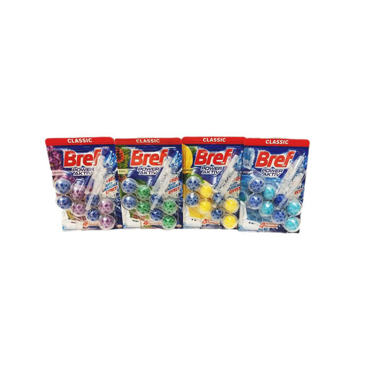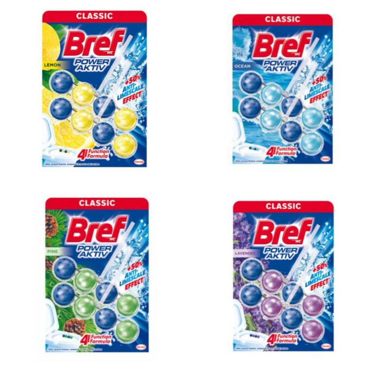 قرص ضدعفونی کننده و خوشبوکننده توپی برف BREF که دارای 4 عملکرد میکروب زدا -جرم زدا-ضد عفونی کننده و در نهایت خوشبو کننده است..این پک شامل 4 رایحه درخت کاج-اقیانوسی-لیمو و لوندر میباشد. نسل جدید 50 درصد ضد رسوب زدایی بیشتر دارد