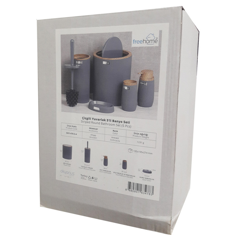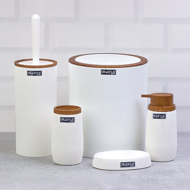 جدیدترین ست سرویس بهداشتی 5 پارچه ساخت فری هوم ترکیه پیشرو در صنعت بهداشت و لوازم خانگی، این ست 5 پارچه تمام نیازهای موجود در حمام و سرویس های بهداشتی را برطرف می نماید، محصولی بسیار کاربردی به همراه کیفیت و زیبایی. این مجموعه زیبا از آکریلیک تولید شده است که ماندگاری بسیار بالایی دارد. دارای استانداردهای ایمنی و سلامت بهداشت انسان از اروپا را دارد و محصولی صادراتی به اروپا می باشد. شامل سطل درب دار، فرچه و ظرف مخصوص آن، جا مسواکی، جامایع پمپی و جاصابونی می باشد.تمامی اقلام قابلیت شستوشو دارند و میتوانید با خیالی آسوده، آنها را بشویید. با این ست بهداشتی، زیبایی محیط و سرویس ها چندین برابر میشود.