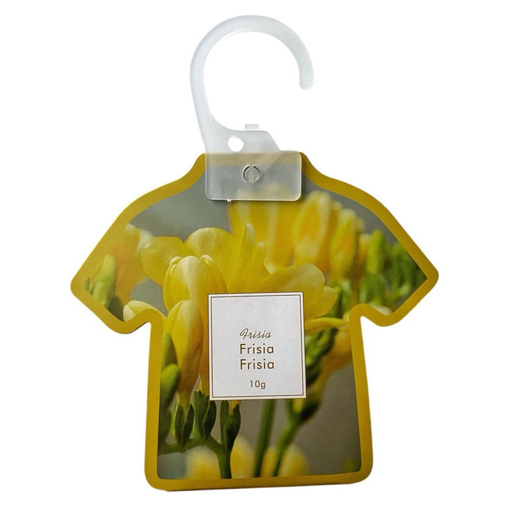 خوشبو کننده و ضد بید کمد لباس مدل فریزیا از محصولات کاربردی و پرطرفدار است . این خوشبو کننده ها در بسته های 10 گرمی عرضه شده و دارای رایحه های متنوع و نسبتا قوی می باشد که می تواند برای خوشبو نگاه داشتن کمد و کشوهای حاوی لباس، رخت خواب و حتی سرویس بهداشتی و محل کار و زندگی استفاده شود. این محصول به شکل آویز درون یک لفاف سلفونی به دست شما می رسد. برای استفاده کافیست تا پاکت را از سلفون خارج کرده و در محل مورد نظر قرار دهید. برای راحتی یک قلاب آویز نیز روی این پاکت قرار دارد که به شما امکان آویزان کردن آن را روی میله کمد یا سطوح دلخواه دیگر می دهد.
