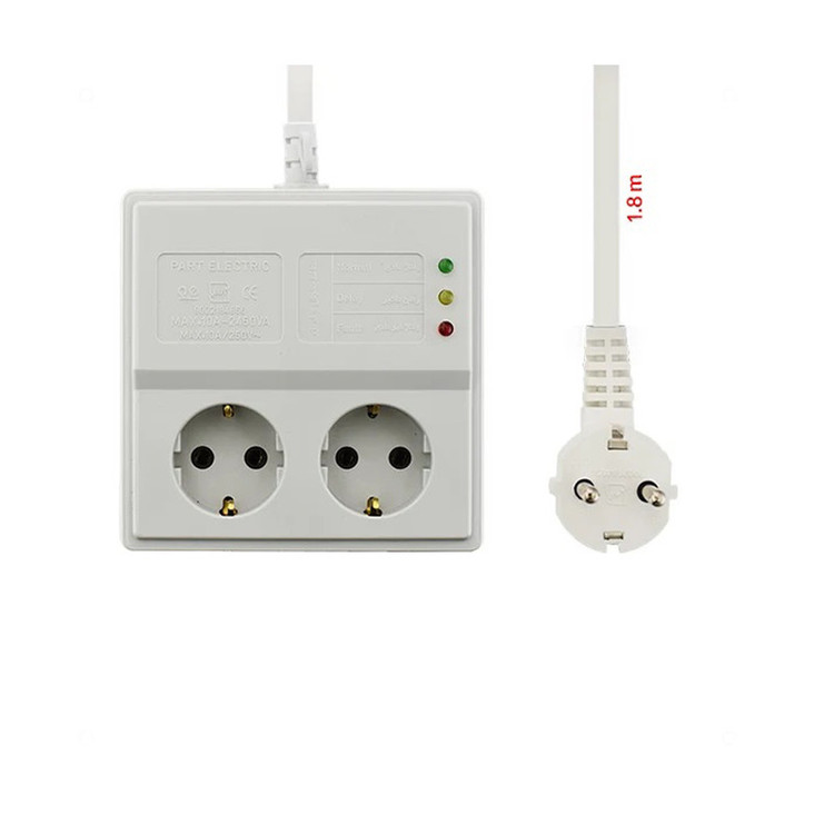 مشخصات این محافظ شامل دو عدد پریز با جنس مغزی سرامیک است که با طول کابل 1.8 متر، امکان کاربری راحت و انعطافپذیر را به شما میدهد. این محافظ همچنین قابلیت چندراهی برق ارت (ارت بهمعنای انتقال برق از یک منبع به منبع دیگر بدون تغییر فرکانس) را داراست و با حداکثر جریان انتقالی 10A و حداکثر توان قابل پشتیبانی 2450VA به شما اطمینان میدهد که دستگاههای شما با این محافظ بهخوبی کار خواهند کرد.