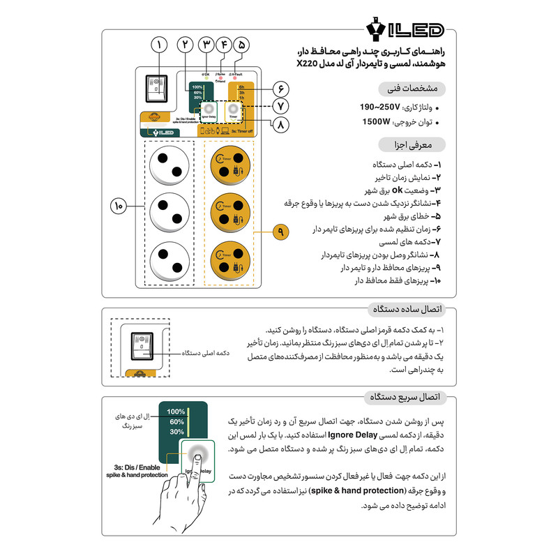 محافظ ولتاژ آی لد مدل هوشمند تایمردار کد X220
