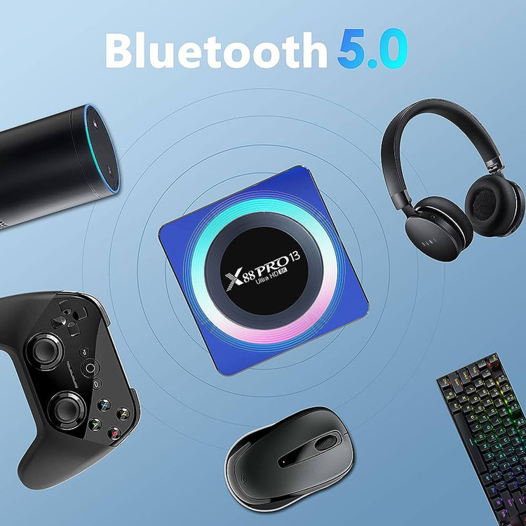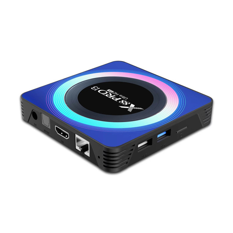 اندروید باکس X88 Pro version 13 Acrylic Case از سری اندروید باکس های X88 با طراحی زیبا و اندروید جدید ورژن 13 می باشد.اگر دنبال تبدیل تلویزیون خود به تلویزیون هوشمند هستید و میخواهید نرم افزار های پر طرفدار اندروید را روی تلویزیون خود داشته باشید، فیلم ببینید از پلتفرم های فیلیمو ، نماوا ، فیلم نت و..... وب گردی کنید، بازی های اندروید قابل استفاده در اندروید باکس را نصب کنید و ساعات مفرح برای خود و خانواده خود ایجاد کنید راه حل آن خرید اندروید باکس است.این اندروید باکس دارای RK3528 Quad-Core 64bit Cortex-A53 و گرافیک Mali 450 MP2 می باشد با حافظه داخلی 32 گیگ و رم 4 گیگ که دستگاهی باکیفیت و سرعت بالا را به ارمغان آورده است.این اندروید باکس دارای بلوتوث ورژن 5 است.درارای یک پورت ورودی USB3 و یک پورت ورودی USB2 همچنین دارای WiFi6 و کیفیت تصویر تا 8K می باشد.این دستگاه دارای ورودی کابل LAN و همچنین ورودی SD Card نیز می باشد و از طریق پورت HDMI و کابل HDMI تصویر را به تلویزیون شما انتقال می دهد.