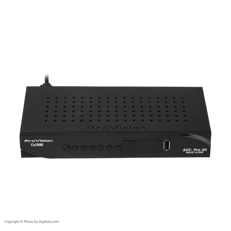 گیرنده دیجیتال پروویژن مدل 247-Pro 20 یکی از گیرندههای دیجیتال خوب تولید شده در بازار است. این محصول، قادر است تمامی شبکههای دیجیتالی موجود در سراسر کشور را دریافت کند و محدودیتی برای کاربر بابت دریافت کانال ایجاد نمیکند؛ همچنین این مدل، با قابلیت PVR این امکان را فراهم میآورد که بتوانید برنامههای مورد نظر خود را روی Flash Memory و یا هارد اکسترنال با فرمتهای NTFS و یا FAT32 ضبط کنید. در زمان ذخیرهکردن یک برنامه، میتوانید همزمان یک کانال تلویزیونی دیگر را تماشا کنید. جالب است بدانید که حتی در صورت خاموشبودن تلویزیون، این گیرندهی دیجیتال همچنان قادر است به ذخیرهکردن برنامهی مورد نظر شما بپردازد. این گیرنده قابلیت این را دارد که تا 1000کانال تلویزیونی را در خود ذخیره کند و نمایش دهد که با توجه به تعداد کانالهای صدا و سیمای ایران، میتوان گفت که تمامی این کانالها میتوانند در آن ذخیره شوند؛ همچنین این محصول قادر است تصاویر را با کیفیت FULL HD نمایش دهد. برای اتصال این گیرنده به دستگاههای صوتی و تصویری، در بدنهی آن خروجیهای متنوعی از جمله پورت HDMI و خروجیهای کامپوزیت و کامپوننت کواکسیال تعبیه شده است. یکی دیگر از قابلیتهایی که در این گیرنده در نظر گرفته شده است، بازیهای فکری متعدد هستند که میتوانند به عنوان یک سرگرمی استفاده شوند. این گیرنده دیجیتال دارای حافظه داخلی 512 مگابایت DDR2 و حافظه فلش 32 مگابایت است که برای شما بسیار کاربردی خواهد بود. همراه این گیرنده دیجیتال یک عدد ریموتکنترل چندکاره ارائه میشود که میتوانید با انجام تنظیمات، از آن برای کنترل تمامی پخشکنندههای صوتی و تصویری منزل استفاده کنید.