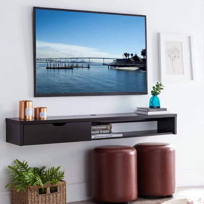 میز تلویزیون دیواری مدل DLF89L یک میز تمام اسپرت، مستطیل کشیده است که به عنوان شلف TV با وزنی سبک و ابعاد استاندارد برای نمایشگر 32 تا 55 اینچ مناسب است. از آنجا که اتصال به دیوار میز از اهمیت بالایی برخوردار است یک قید (تیرک) محکم در پشت میز استفاده شده که توسط پیچ رولپلاک به دیوار اتصال می خورد برای اتصال این میز فقط به یک دریل دیوار و پیچ گوشتی نیاز دارید. جنس این میز لترون (ملامینه) درجه یک است و برای خرید جنس و ابعاد متفاوت می توانید دیگر محصولات دلفان دکور را بررسی کنید. لوازم قابل تعبیه شدن در میز و اطلاعات دقیق ابعادی در بین تصاویر محصول وجود دارد. میز DLF89L در رنگهای مختلف موجود است برای انتخاب رنگ مورد پسند سمپل رنگ را در تصاویر محصول ببینید. با کوچکتر شدن متراژ خانه ها استفاده فضای کف منزل اهمیت بالایی دارد و به جای کف بیشتر از دیوارهای استفاده می شود، این میز تلویزیون دیواری (میز ال سی دی ، میز ال ای دی) با داشتن یک درب داشبوردی، وسایل زیادی در خود جای میدهد و همین عمر باعث می شود از ریختوپاش اطراف تلویزیون کم و انضباط خاصی را در محدوده نمایشگر ایجاد شود.