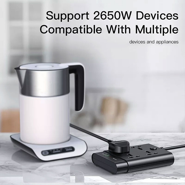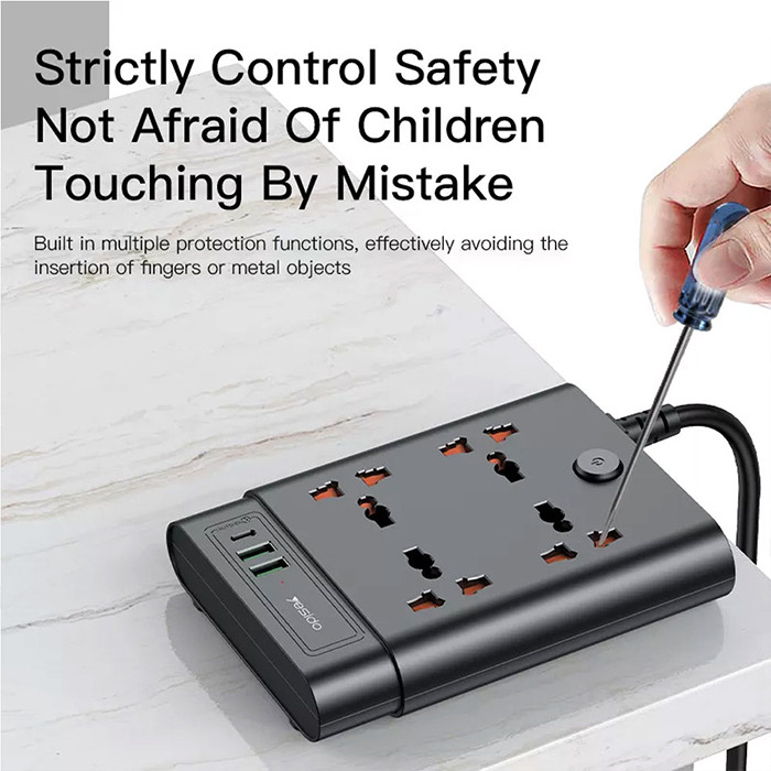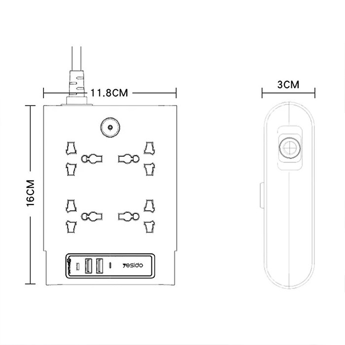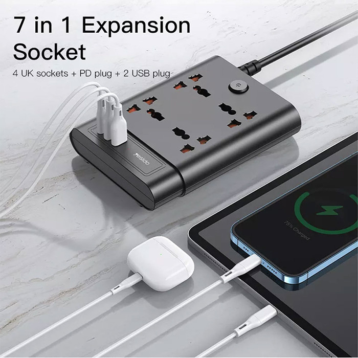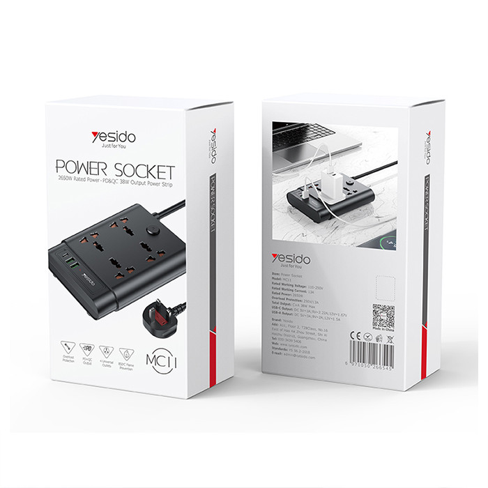 چند راهی برق یسیدو MC08 با خروجی کلی 2650 وات از برند محبوب یسیدو Yesido می باشد. جنس این چند راهی ABS + PC است که بسیار مقاوم و بادوام می باشد. این محصول دارای 4 خروجی برق و 6 خروجی USB می باشد. چند راهی Yesido MC11 دارای 2 خروجی USB و 1 عدد خروجی تایپ سی با قابلیت فست شارژ می باشدکه کاربر می تواند برای شارژ چندین دستگاه مانند تلفن های هوشمند، تبلت، لپ تاپ، پروژکتور، لامپ و … استفاده کند. این چند راهی از جریان بیش از حد، بار اضافی بر روی تمامی دستگاه های متصل به برق جلوگیری می کند. چند راهی یسیدو از PC با کیفیت ساخته شده است که در برابر آتش مقاوم و دارای دوام بالا می باشد. طول سیم این دستگاه 3 متر با سیم مسی 100% خالص است که جریان برقی پایدار برای دستگاه ها برقرار می کند. چند راهی برق Yesido MC11 محصولی با کیفیت، داوم بالا و ایمن می باشد. برای ایمنی بیشتر بر روی سری سه شاخه برق یک عدد فیوز تعبیه شده تا در صورت اتصالی، برق را قطع نموده تا آسیبی به دستگاه ها وارد نشود.