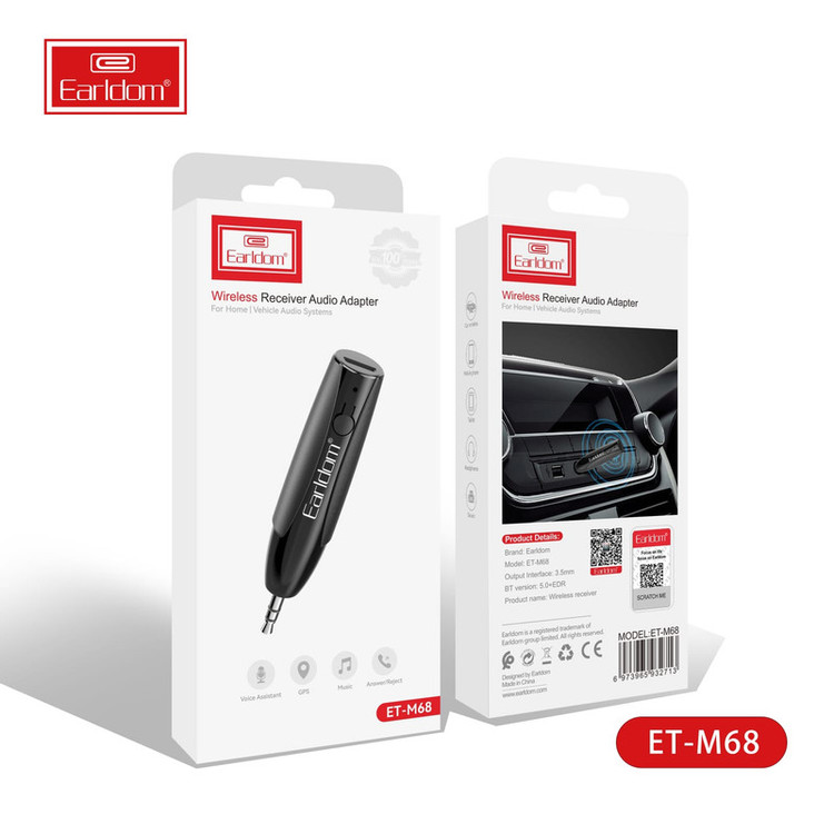 نحوه کار این گیرنده صدا به این صورت است که از طریق متصل کردن گوشی به واسطه بلوتوث به سیستم صوتی ماشین بتوان آهنگ های داخل گوشی را از سیستم صوتی ماشین پخش کرد و با تمام گوشی های دارای بلوتوث سازگار است. این دستگاه کوچک برای ظبط صوت های قدیمی که از فلش مموری پشتیبانی نمی کنند و یا درگاه USB آن ها خراب باشد می تواند بسیار کاربردی باشد ، روش کار این گیرنده به این صورت است که در واقع به هر دستگاهی که ورودی AUX داشته باشد متصل میشود و به دستگاه صوتی شما (سینما خانگی، انواع ضبط و پخش ماشین و اسپیکر و ... ) قابلیت اتصال بلوتوث را اضافه خواهد کرد و میتوانید آن را به موبایل، تبلت و لپ تاب متصل کنید و از طریق آن ها موسیقی را با کیفیت و لذتی فراتر از انتظار پخش کنید. گیرنده صوتی Earldom M68 شارژی میباشد و حدود 4 ساعت قابلیت پخش مداوم دارد، از طریق کابلی که در جعبه آن تعبیه شده است شارژ میشود و حتی می توان کابل آن را به درگاه USB خود ضبط و یا از طریق شارژر فندکی خودرو به راحتی شارژ کرد . اندازه فوق العاده کوچک این دستگاه سبب شده است یک همراه همیشگی باشد و در همه جاه همراه شما باشد.