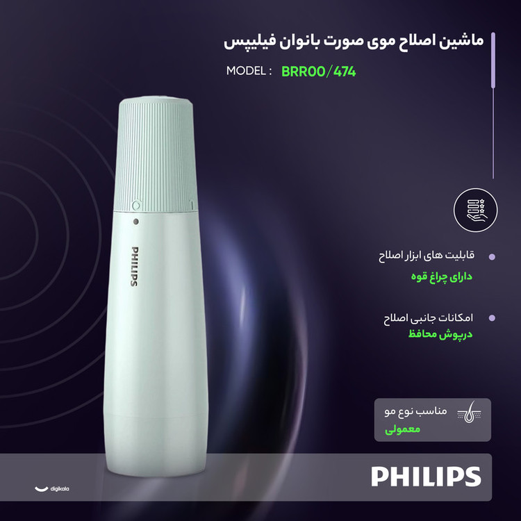 ماشین اصلاح موی صورت بانوان فیلیپس مدل BRR474 به طور خاص برای اصلاح دقیق و ملایم موهای صورت بانوان طراحی شده است. این دستگاه قادر است حتی ریزترین موهای نواحی بالای لب، چانه، گونهها و خط فک را به آرامی و بهصورت کاملاً نزدیک به پوست اصلاح کند، به طوری که ضخیمترین موها نیز به آسانی حذف میشوند. از ویژگیهای مهم این محصول، وجود یک آینه کوچک داخلی است که امکان مشاهده دقیق صورت را هنگام اصلاح فراهم میکند تا هیچ بخشی بدون اصلاح نماند. همچنین نوار دایرهای LED در حاشیه سری دستگاه، نور کافی برای دید بهتر در حین اصلاح ایجاد میکند و کمک میکند بهترین عملکرد ممکن حاصل شود. این ماشین اصلاح به دلیل طراحی جمعوجور و وزن سبک، به راحتی در کیف دستی قرار میگیرد و قابل حمل است. انرژی آن توسط یک باتری قلمی تأمین میشود که امکان استفاده در هر زمان و مکان را فراهم میکند. بر اساس نظرسنجی فیلیپس، ۸۶٪ کاربران اعلام کردهاند که هنگام استفاده از این دستگاه، نسبت به روشهای سنتی مانند اپیلاسیون یا موچین، هیچ دردی احساس نکردهاند. حرکات نرم و روان تیغهها، کمترین اصطکاک را با پوست ایجاد کرده و روند اصلاح را سریعتر و راحتتر میکند. تیغههای خودتیز شونده این مدل نیازی به روغنکاری ندارند که این موضوع به طول عمر بیشتر دستگاه کمک میکند. همچنین طراحی دهانه منحنی سری دستگاه، عملکرد آن را بهبود بخشیده و اصلاح دقیقتری را ممکن ساخته است.