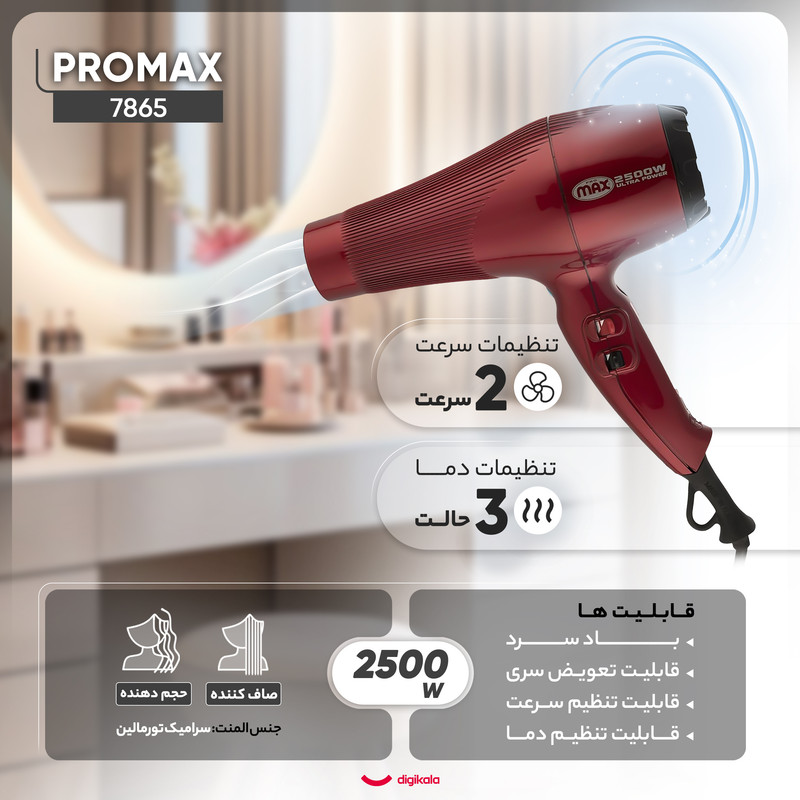سشوار حرفه‌ ای پرومکس مدل 7865