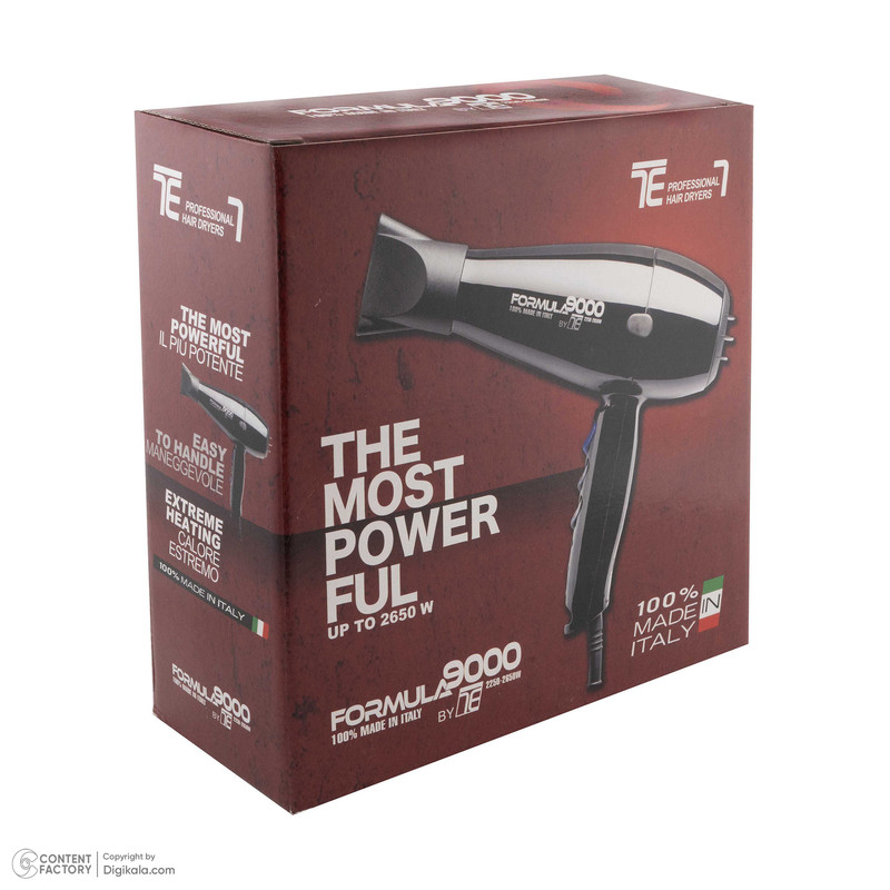 سشوار حرفه ای تکنو درای مدل Formula 9000 یک محصول با کیفیت و قدرتمند است که با داشتن توان مصرفی 2650 وات، نوع موتور AC و قابلیت عملکرد توربو می تواند حرارت و سرعت بالایی را برای خشک کردن و حالت دادن به موهای شما بدهد. این سشوار حرفه ای با داشتن قابلیت تنظیم دما و باد سرد می تواند دمای مناسب برای موهای شما را انتخاب کند و از آسیب رسیدن به موها جلوگیری کند. این سشوار حرفه ای همچنین با داشتن قابلیت تنظیم سرعت می تواند سرعت مناسب برای حالت دادن به موهای شما را انتخاب کرده و ازبه هم ریخته شدن موها جلوگیری کند. این سشوار حرفه ای با داشتن وزن 499 گرم، اندازه مناسب و دسته ارگونومیک می تواند تجربه استفاده راحت و آسانی را به شما بدهد. این سشوار حرفه ای با داشتن کابل بلند می تواند موجب آزادی حرکت شما شده و از گره خوردن کابل جلوگیری کند. این سشوار حرفه ای همچنین با داشتن دهانه متمرکز کننده می تواند جریان هوای دقیق و متمرکز را به موهای شما بدهد و از پخش شدن هوا جلوگیری کند.