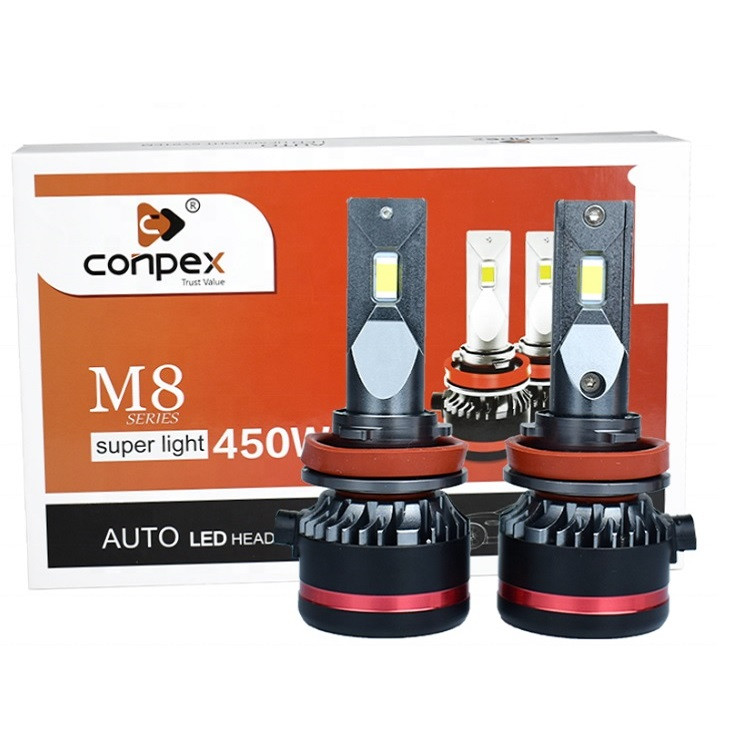 برند کانپکس conpex یکی از شرکتهای معروف در زمینه تولید لامپ خودرو و هدلایت میباشد . هد لایت مدل M8 نیز از مدلهای با کیفیت و پر فروش شرکت کانپکس میباشد که از چیپ CSP در دو طرف بدنه استفاده شده است . دارای 45 وات توان مصرفی هر عدد از هدلایتها میباشد.این مدل در پایه H1 برای بیشتر ماشینهای ایرانی و خارجی مورد استفاده قرار میگیرد.