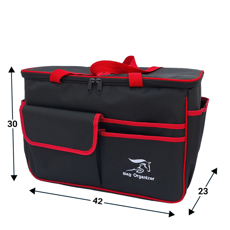 این کیف تولید شده از برزنت محکم و با دوام و ضد آب می باشد دارای لایه اسفنجی در دیواره ها برای استحکام بیشتر ، دارای 3 عدد جیب در جلو و 3 عدد جیب در کناره ها برای لوازم دم دستی و انواع ابزار مورد نیاز ، لوازم ریز ماشین، خوراکی، زیر انداز، بطری آب و... است .همچنین دارای 2 عدد دسته جهت حمل آسان در کناره ها می باشد قابل استفاده برای قرار دادن لوازم کمپینگ، گردش و تفریح است ابعاد این کیف 42x30x23 سانتیمتر