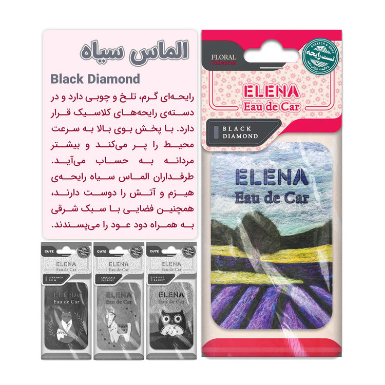 رایحههای موجود در این مجموعهی 4 عددی: 1. سالاد میوه رایحهای شیرین، خنک و میوهای دارد. 2. زندگی صورتی:__ رایحهای گرم، شیرین، گلی و میوهای دارد. رایحهای مدرن و جوانپسند که پخش بوی بالایی دارد ___ 3. الماس سیاه:__ رایحهای گرم، تلخ و چوبی دارد و در دستهی رایحههای کلاسیک قرار دارد. ___ 4. سبد انگور: رایحهای گرم، شیرین و میوهای با ته مزهای از ترشی دارد. این رایحه یادآور یک ایوان شربت آلبالو خواهد بود. ___ ماندگاری: خوشبو کننده های کارتی با توجه به مقدار اسانس تزریق شده و میزان برخورد هوا با آن میتوانند تا حدود دو ماه رایحهی خود را حفظ کنند. هرچه گردش و دمای هوا افزایش یابد سرعت مصرف شدن اسانس معطر بیشتر خواهد شد. ___ چرا این محصول بهترین انتخاب است؟ این مجموعهی 4 عددی شامل آویزهایی بسیار زیباست که جلوهای متفاوت به خودروی شما خواهند داد و این زیبایی بصری به همراه پخش اسانس معطر از بهترین کیفیت و رایحه، کاربردی دوچندان به این محصول داده است. مجموعه 4 عددی خوشبوکننده ماشین النا یک محصول اقتصادی است که با هزینهای بسیار مناسب شما را صاحب 4 آویز خوشبوکننده با طرح و رایحهی جذاب، بینظیر و متفاوت خواهد کرد.