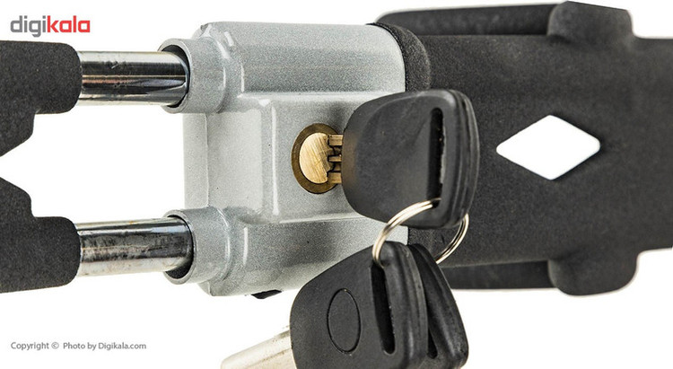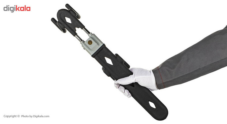 محصولی که در تصویر مشاهده میکنید، قفل فرمان خودرو شرکت «گلد» (Gold) است. این قفل فرمان از امنیت مطلوبی بهره میبرد و از آلیاژی فولادی و سخت ساخته شده است. این بدنهی سخت، مقاومت بالایی دارد؛ اما همین سختی میتواند به چرم فرمان آسیب بزند. برای رفع این مشکل، این محصول به روکشی از جنس فوم مجهز شده است که مانع از ایجاد خطوخش روی فرمان خواهد شد. به همراه این قفل فرمان، سه کلید کامپیوتری عرضه میشود که علاهبر افزایش ایمنی آن میتوانید دو کلید دیگر را به صورت یدک نزد خود نگه دارید. این قفل فرمان به صورت کشویی باز و بسته میشود و در حالت جمعشده، طولی برابر با 49 سانتیمتر دارد؛ همچنین در حالت باز، طول آن به 67 سانتیمتر میرسد. استفاده از قفل فرمان در محیطهایی که احتمال دزدی خودرو زیاد و امنیت کم است، بسیار سودمند بهشمار میرود. شرکت گلد تجربهی بسیاری در تولید قفلهای فرمان دارد و انواع مختلفی از آنها را تولید میکند. محصولات این شرکت کیفیت قابلقبولی دارند.