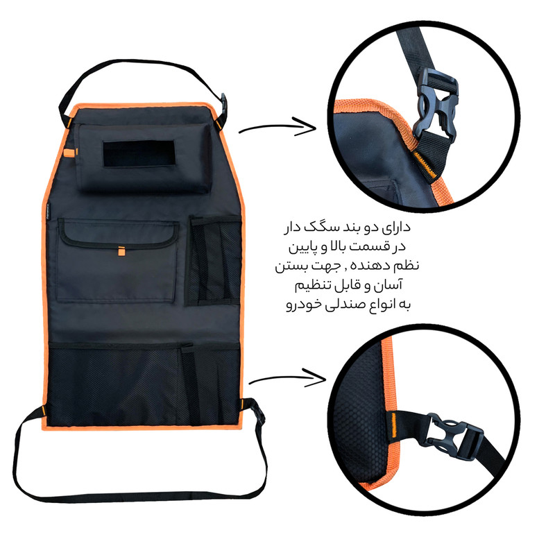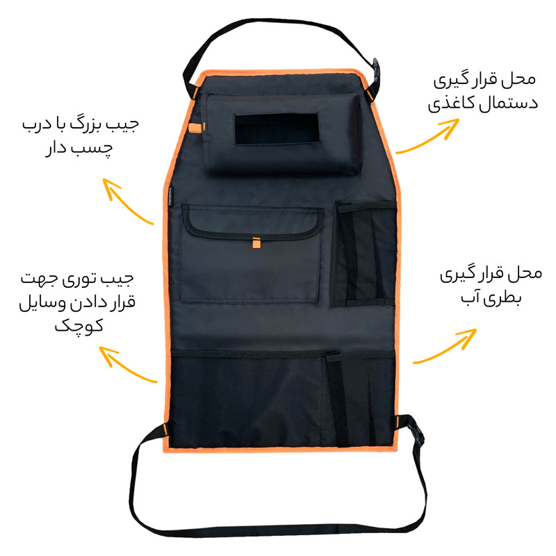 حتما برایتان پیش آمده در هنگام سفر یا پیکنیکهای یک روزه با کمبود جا در وسیلهی نقلیه خود مواجه شدید. در بسیاری از موارد جای کافی برای قراردادن وسایلی مانند آب، دستمال کاغذی و وسایل کوچک و پرکاربرد وجود ندارد. کیف پشت صندلی خودرو فوروارد مدل FCLT1121-2این مشکلات را بهخوبی برطرف کردهاست. این وسیله با نظمبخشیدن به اتومبیل شما، فضای داخل ماشین را از هرجومرج خارج میکند. کیف پشت صندلی خودرو فوروارد مدل FCLT1121-2 دارای ابعاد مناسب و بسیار سبک است. این وسیله دارای پنج محفظه بوده و در داخل اتاق خودرو قرار میگیرد. از این وسیله پرکاربرد در پشت صندلیهای جلو و جلوی صندلیهای پشتی باتوجه به نیاز خود میتوانید استفاده کنید. این محصول از جنس برزنت است و دارای دو نوار سگک دار در قسمت بالا و پایین بوده و برای انواع خودرو مناسب است. کیف پشت صندلی خودرو فوروارد مدل FCLT1121-2دارای یک جیب چسبی بزرگ، یک جیب توری بزرگ، دو جیب توری جهت قراردادن بطری نوشیدنی و قمقمه و یکجا برای دستمالکاغذی است. این ست در بسته دو عددی عرضه میشود.