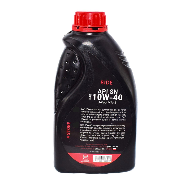 وغن موتورسیکلت آیسوتک 10w40 SN یک روغن موتور تولید شده تحت لیسانس لهستان با خاصیت کاهش مصرف سوخت و اصطکاک است. این روغن موتور با آخرین تکنولوژی فول سنتتیک و با بهترین مواد پایه و ادتیوهای بسیار با کیفیت فرموله شده است که باعث ایجاد اطمینان کامل از پاکیزگی موتور, جلوگیری و محافظت در برابر سایش و خوردگی قطعات داخلی پیشرانه میباشد. روغن موتورسیکلت آیسوتک تحت لسیانس و فرمولاسیون لهستان تولید میشود و با توجه به کیفیت بسیار بالای محصولات آیسوتک علاوه بر نشان استاندارد ملی, توانسته است استاندارد CE اروپا, ایزو 9001, ایزو 14001, ایزو 18001بین المللی را نیز کسب نماید که بر روی محصول درج شده است. روغن موتور آیسوتک SN با جلوگیری از پدیدههای LSPI یا همان سرعت کم احتراق در موتورهای T-GDI آسیب ناگهانی اجزای کلیدی موتور (مانند حلقه های پیستون, میله های اتصال و غیره ) را به حداقل میرساند. کاهش گاز دمنده پیستون با اثر تمیزکنندگی روغن میتواند قدرت موتور را حفظ کند و با جلوگیری از تشکیل لجن موتور باعث افزایش طول عمر موتور میشود. این روغن با کارایی بسیار بالا, مناسب استفاده در خودرو و موتورسیکلتهای بنزینی چهار زمانه تنفس طبیعی و همچنین موتورهای توربو شارژ میباشد و به صورت ویژه مناسب برای موتورهای توربو پیشرفته, موتورهای با تکنولوژی مولتی والو (چند سوپاپ), مبدلهای کاتالیزوری و تکنولوژی پاشش سوخت ریلی معمولی(Commom rail injection technoligy) مناسب میباشد. این محصول برای انواع اتومبیل و خودروهای وارداتی و داخلی مانند تویوتا و نیسان, رنو و پژو, کیا و هیوندای, انواع خودروهای وارداتی و مونتاژ و اکثر محصولات ایران خودرو و سایپا و... . انواع موتورسیکلت مناسب است. خریدار محترم : خودرو و موتورسیلکت های معرفی شده صرفا از جهت نمونه معرفی شده است و قطعا خودروهای دیگری نیز از این روغن موتور استفاده می کنند. لطفا قبل از انتخاب روغن موتور با مراجعه به دفترچه راهنمای خودرو و موتورسیکلت و یا جستجو در مراجع قابل اطمینان در حوزه روانکار، از مناسب بودن نوع روغن موتور ( ویسکوزیته یا غلظت ) با خودرو یا موتورسیکلت خود اطمینان حاصل فرمایید . قابل ذکر است جهت اصالت کالا و اطمینان مشتری از خرید, این محصول مستقیما توسط کارخانه عرضه میگردد.