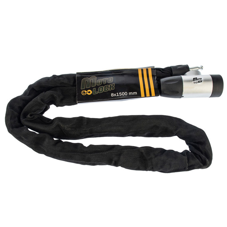 برند موتولاک 5 سال در زمینه انواع قفل موتورسیکلت فعالیت دارد. قفل های زنجیری موتولاک دارای زنجیر سایز 8 ضد برش بوده و 2 عدد کلید کامپیتری که به راحتی باز و بسته میشود.