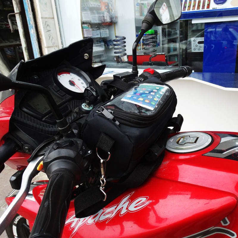 با توجه به حجم بالای تردد افراد با موتورسیکلت در زندگی امروزی، وجود لوازم جانبی موتورسیکلت برای رفع نیازهای موتورسواران ضروری می باشد. یکی از این لوازم جانبی کیف موتورسیکلت است که بوسیله آن موتورسوار می تواند لوازم مورد نیاز روزانه خود را راحت تر با آن حمل نماید. محصولی که معرفی می نماییم کیف موتورسیکلت نیازشاپ مدل NS2020 می باشد. این محصول یک کیف مخصوص موتور سیکلت است که از جنس برزنت درجه یک تولید شده است. یکی از مزایای این کیف موتورسیکلت استفاده 2 حالته آن است بطوریکه این کیف روی باک موتور سیکلت و همچنین در صورتی نیاز جلوی موتور سیکلت بالای چراغ قرار می گیرد. بدین منظور در هر دو طرف این کیف مخصوص موتور سیکلت بست های قفلی و سگک دار تعبیه شده که موتورسوار به دلخواه بتواند از هر دو حالت استفاده نماید. در قسمت روی این کیف موتورسیکلت محفظه مخصوص تلفن همراه تعبیه شده و دارای صفحه مخصوص و حساس به تاچ گوشی است. شما می توانید بدون بیرون آوردن گوشی از کیف از تاچ گوشی استفاده نمایید. با گذاشتن این کیف روی باک موتور سیکلت دسترسی به کیف راحت تر است و در صورت عدم تمایل می توانید آنرا به بالای چراغ موتور متصل نمایید. قسمت داخلی این کیف موتورسیکلت آستر کار شده و همچنین قسمت ورودی تلفن همراه نیز به دلیل جلوگیری از رطوبت در حین رانندگی از داخل کیف تعبیه شده است. این کیف موتورسیکلت دارای بند رودوشی است و شما می توانید هنگام پیاده شدن از موتور از آن به عنوان کیف رودوشی نیز استفاده نمایید. ابعاد این کیف مخصوص موتور سیکلت 10 × 15 × 30 سانتی متر است و فضای لازم برای قراردادن لوازم ضروری مانند خوراکی، اسناد و مدارک، لوازم ضروری ریز و... را فراهم می کند. این محصول برای همه مدل های مختلف موتورسیکلت ها مناسب است و در صورتی که جز کسانی هستید که همواره با موتورسیکلت تردد می نمایید این محصول می تواند برای شما بسیار کاربردی باشد.