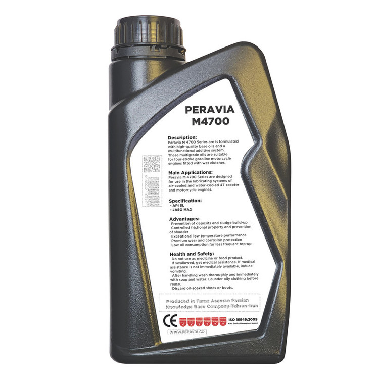 روغنهای سری Peravia M 4700 با روغنهای پایه با کیفیت بالا و یک پکیج افزودنی چند منظوره فرموله شدهاند. این روغنهای چند درجهای برای موتورهای بنزینی چهار زمانه موتورسیکلت مجهز به کلاچهای مرطوب مناسب هستند.