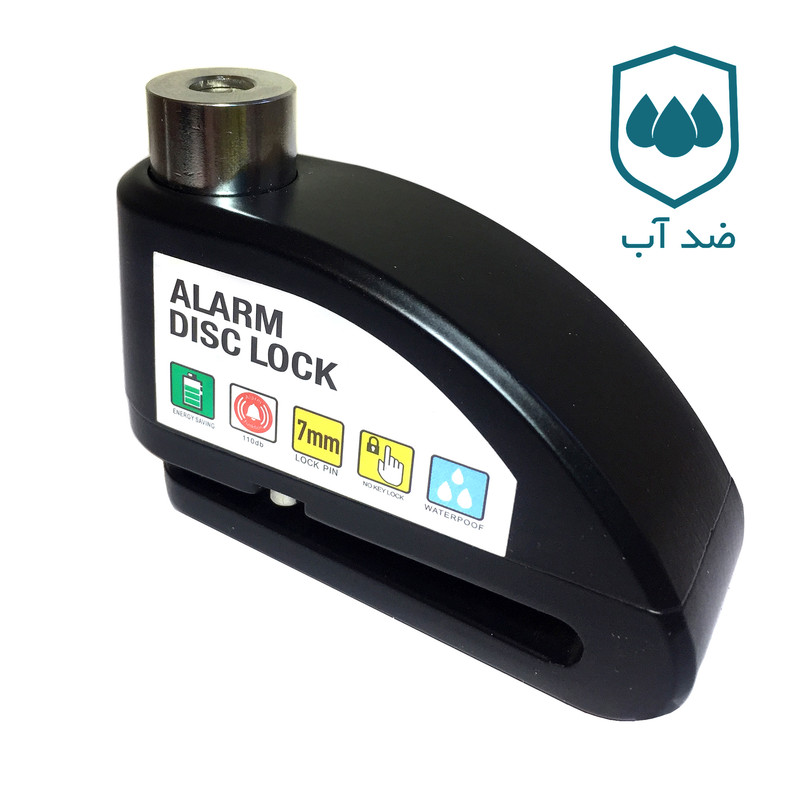 ضد آب قابلیت تعویض باتری ضخامت پین 7 میلی متر بلندی آلارم 110 دسیبل روکش نیکل و مس دو کلید یدک