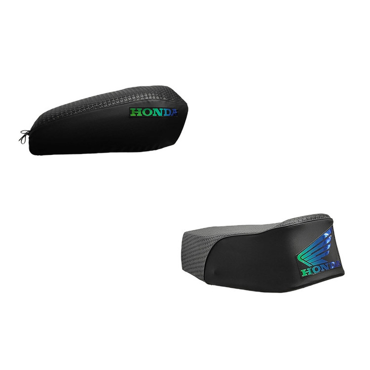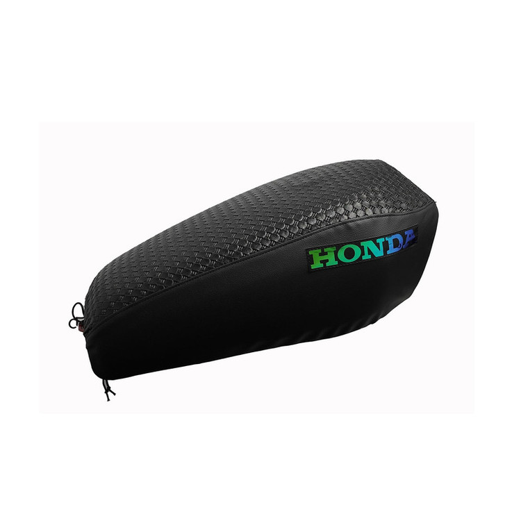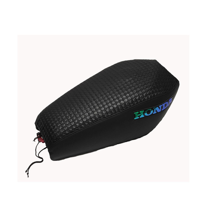 محصولی که مشاهده میکنید روکش زین و باک "مناسب برای موتورسیکلت های هوندا و طرح هوندا میباشد .این محصول با توجه به الگوبرداری از نمونه های استاندارد بسیار خوش قالب میباشد. در ساخت این محصول از سه مدل چرم مصنوعی استفاده شده .کف صندلی و باک از چرم طرح حصیری با زیره نمدی و پشت صندلی و بغل باک از چرم پالرموی پشت جودون یک میلیمتری میباشد که از طول عمر بالایی برخوردار است و در تمامی مراحل دوخت و مونتاژ از نخ دولای پلی استر استفاده شده که مقاومت بالایی دارد.