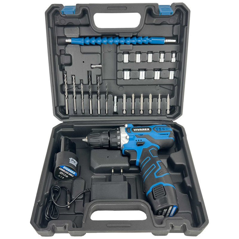 دریل پیچگوشتی شارژی 12 ولت ویوارکس مدل VR12V-2A-BLUE دارای موتوری قدرتمند است که میتواند به حداکثر دور موتوری برابر با 1500 دور بر دقیقه در حالت آزاد دست پیدا کند. تورکمتر 18 به اضافه حالت حالت مته که روی سه نظام دستگاه تعبیه شده به کاربران این امکان را میدهد که بنا به موقعیت بتوانند از قدرت های متفاوت این دریل شارژی استفاده کنند. و دکمه ی مجزا 2 سرعته تعبیه شده برای این محصول کاربران را قادر میسازد تا با توجه به نیاز خود بتوانند سرعت و قدرت گردش این دریل را تنظیم نمایند. به تمامی امکاناتی که اشاره شد کلید گازی این محصول برای تنظیم سرعت را اضافه کنید و کلید تغییر حالت گردش چپگرد-راستگرد تعبیه شده برای این محصول به کاربران کمک میکند تا بدون هیچ مشکلی به باز و بستن پیچها و سوراخکاری در متریالهای مختلف بپردازد. از دیگر مزایای این محصول میتوان به نمایشگر شارژر باطری روی بدنه و چراغ ال ای دی برای روشن کردن محل سوراخکاری و داشتن 2 باتری لتیومی 12 ولت (تولید سال 2024 میلادی) و شارژر خشابی اشاره کرد. سه نظام تعبیه شده برای این محصول از نوع اتوماتیک با سایز 10 میلیمتری بوده که با دقت بالایی ساخته شده است همچنین وجود ست کامل از سریها و متههای مورد نیاز و متداول در یک کیف BMC پرتابل عرضه میگردد، تا کاربران نگرانی بابت صدمه دیدن محصول برای حمل و جابه جایی نداشته باشند.