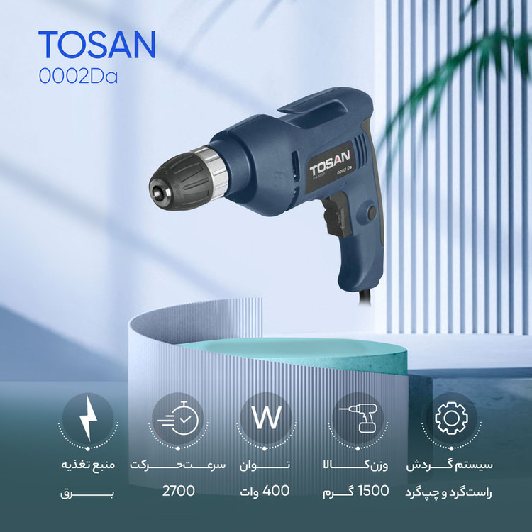 تنوع محصولات توسن درزمینهی ابزار بهخصوص در سالهای اخیر باعث رشد و ارتقاء جایگاه این شرکت در بین مشتریان ابزار در کشورمان شده است. این شرکت علاوه بر تولید محصولات و ابزار صنعتی، در خصوص تولید ابزارهایی که بتوان بهراحتی در منزل هم از آنها استفاده کرد هم فعالیت محسوسی داشته است. دریل مدل 0002 Da یکی از دریلها و محصولاتی است که با برند Tosan به بازار عرضهشده و استفاده از آن بهسرعت و با سهولت بالایی امکانپذیر است.