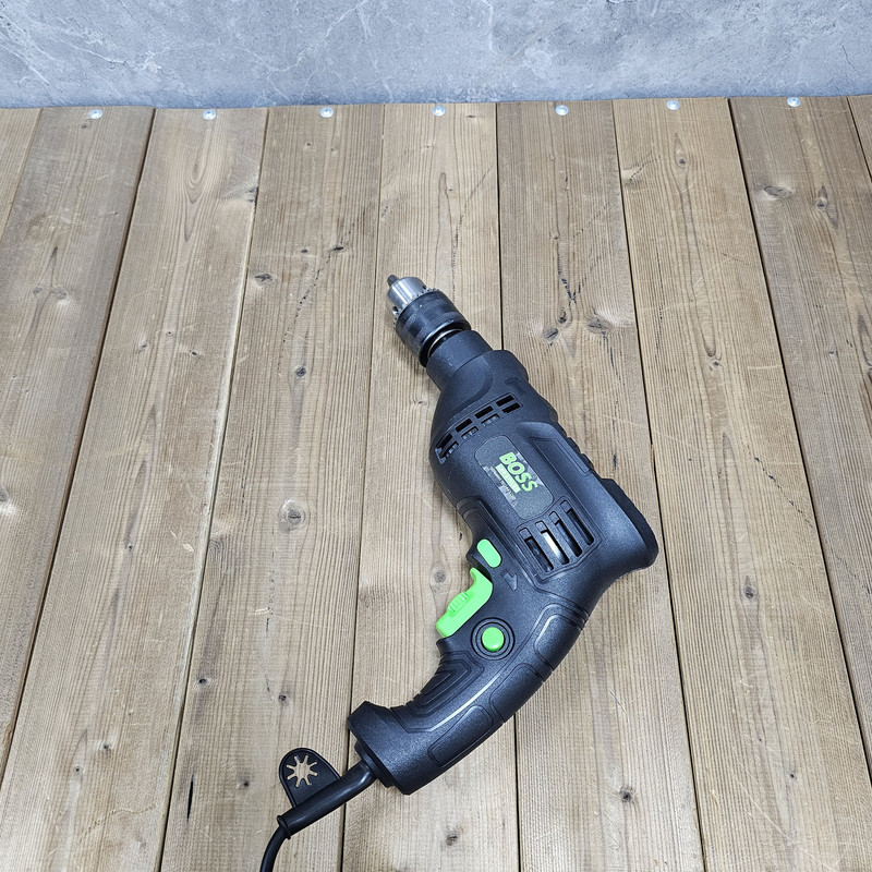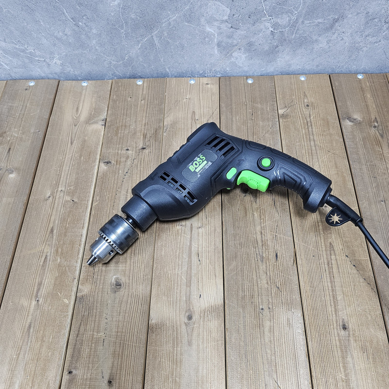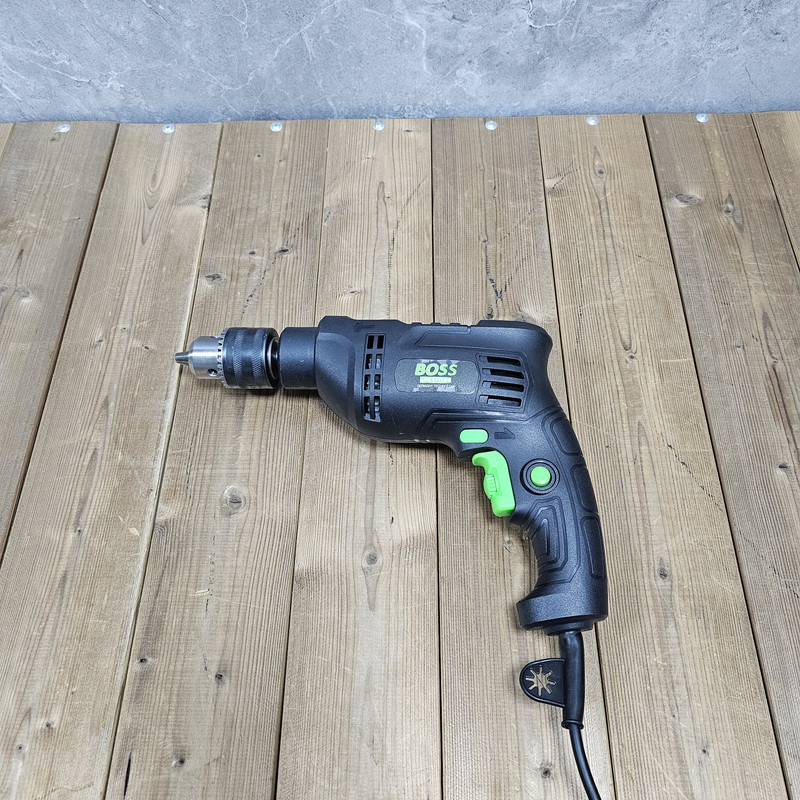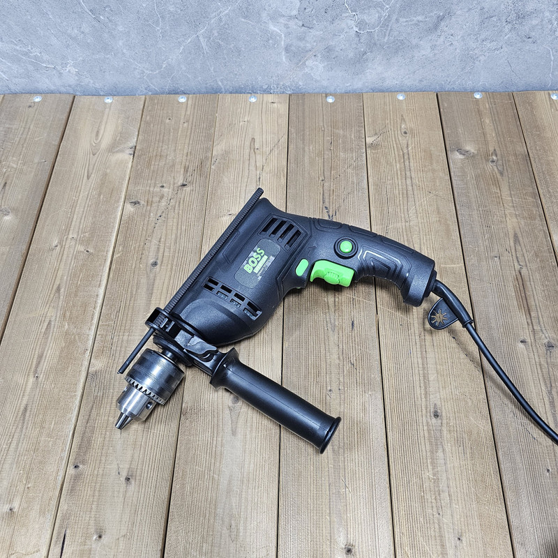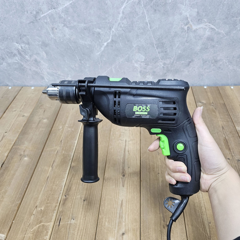 دریل چکشی باس مدل LIFE_STYLE کد BS1305 که یکی از انواع ابزار های برقی دریل هستند که از آنها برای سوراخ کاری و پیچکاری استفاده می شود. مکانیزم کار در این ابزار به گونه ای است که از طریق چرخش مته در سرعت بالا می توان سوراخ کاری را انجام داد. دریل چکشی در اصل یکی از انواع دریل ها هستند که کاربرد وسیع تری نسبت به دریل های معمولی دارد و از آنها می توان در سوراخ کاری سطوح سخت و بتنی و گچی و سنگ و سرامیک و ... استفاده کرد. دریل باس علاوه بر قابلیت سوراخ کاری به صورت چکشی با قطر و عمق بیشتر، در سوراخ کاری بتن و مصالح ساختمانی کاربرد بیشتری دارد، همچنین قابلیت پیچ کاری، به خصوص پیچهای خودکار MDF و چوب را هم داراست. یکی دیگر از از دیگر مزایای این دستگاه قابلیت استفاده بجای آچار بکس در صورت مهیا بودن تبدیل بکس و سبک بودن کار است. با وجود اینکه قابلیت دریل در سوراخ کاری بالاتر است اما دریل باس به دلیل سرعت بالاتر و همچنین تمرکز نیرو برای سوراخ کاریهای دقیقتر و کیفیت سطوح بالاتر، گزینه مناسبتری است. دریل BOSS ابزاری است الکتریکی، که برای سوراخ کردن سطوح به کار میرود. دریل را با توجه به قدرت آن و نیز با استفاده از مَتّه مناسب، می توان برای سوراخ کردن چوب، فلز و بتن به کار برد. با پیشرفت ابزارها، امروزه نه تنها برای سوراخکاری، بلکه با اضافه کردن قطعاتی دیگر، میتوان امکاناتی مانند ساییدن، گردبر، عمودبر و… را هم به این دستگاه اضافه کرد. این دریل برای کارهای خانگی ، کارگاهی،تعمیرگاهی،ساختمانی و نصب و مونتاژ استفاده می شود.