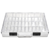 با داشتن این ارگانایزر ابزار، در خانه و یا محل کار، خیالتان از بابت جمع و جور کردن انواع وسایل و ابزار کوچک که معمولاأ کار سختی است، راحت خواهد شد. برای مشاهدهی محتویات این ارگانایزر (به دلیل شفاف بودن در آن) نیازی به باز کردن در نیست و چنانچه تعداد زیادی از این محصول را (جهت نظم دادن به وسایل مختلف) تهیه کرده باشید، به راحتی میتوانید بدون باز کردن در آن از محتویات هرکدام مطلع شوید. دسته دار بودن این جعبه ابزار کمک میکند که به راحتی آنرا حمل کنید و حالت لولایی دسته آن باعث عدم مزاحمت دسته در موقع استفاده خواهد بود. ضمنا برآمدگیهایی روی در و زیر جعبه در نظر گرفته شده که چنانچه بخواهید تعداد زیادی از آنها را روی هم بگذارید به هیچ وجه نگران لغزیدن آنها بر روی یکدیگر نخواهید بود. هر جعبه محتوی دو فایل دو قسمتی کریستالی و شفاف است و هر قسمت میتواند به وسیله پردههای شفاف قابل جابجایی، به دوازده قسمت مساوی و یا تعداد کمتر، قسمتهای با اندازههای دلخواه تقسیم گردد؛ لذا با توجه به نیاز خود میتوانید اندازه و تعداد این تقسیمات را انتخاب کنید. همچنین روی لبهی هر پرده محل کوچکی برای سهولت برداشتن و گذاشتن پردهها در نظر گرفته شده که در صورت نیاز میتوانید عنوان محتویات قسمت مجاور آن را با الصاق کاغذ چسبدار بر روی آن درج نمایید. این جعبه ابزار میتواند برای نظم دادن به بسیاری از وسایل ریز و یا نسبتاً کوچک از قبیل لوازم خیاطی، وسایل هنری، ابزار ماهیگیری، ابزار صنعتی و پیچ و مهره و امثال آنها، وسایل تزیینی و آرایشی کوچک، وسایل و ابزار آلات و المانهای الکترونیکی و ... مورد استفاده قرار گیرد. چنانچه به دلیل اهمیتی که برای منظم بودن همه چیز قائل هستید، به دنبال وسیله مناسبی میگردید، تهیهی تعدادی از این جعبه ابزار میتواند خیال شما را از هر بابت راحت کند.