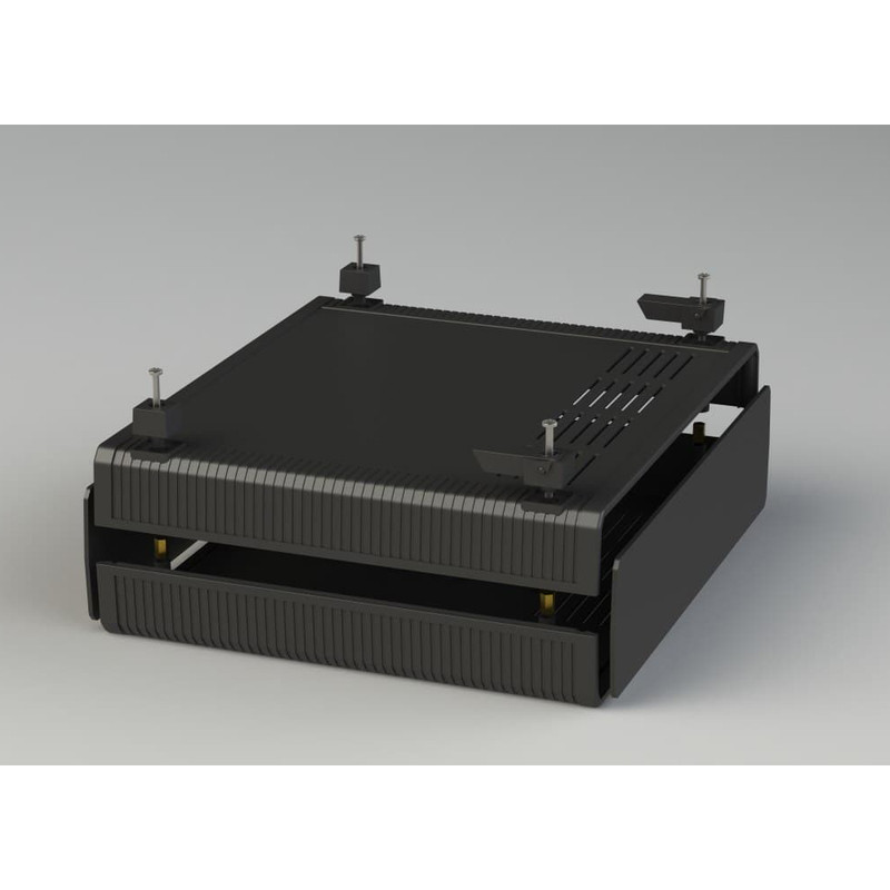 سایر توضیحات : - جای مهره خوری ها، از جنس "آلیاژ برنج" می باشد - به همراه 4 عدد پایه پلاستیک - پایه های جلو بلند و تاشو - پایه های عقب کوتاه و ثابت - خوش ساخت و نو مواد ABS و مناسب برای کاربرد های آزمایشگاهی و عمومی حوزه برق و الکترونیک و . . .