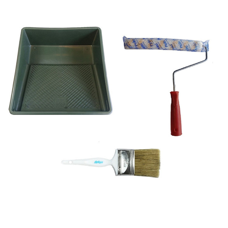 مجموعه 3 عددی وسایل نقاشی ساختمان شامل : 1 عدد سینی 8 لیتری دنیز - 1 عدد غلتک 25 سانتیمتری پینکو - 1 عدد قلم مو 2/5 اینچی (63 میلیمتر) آریا