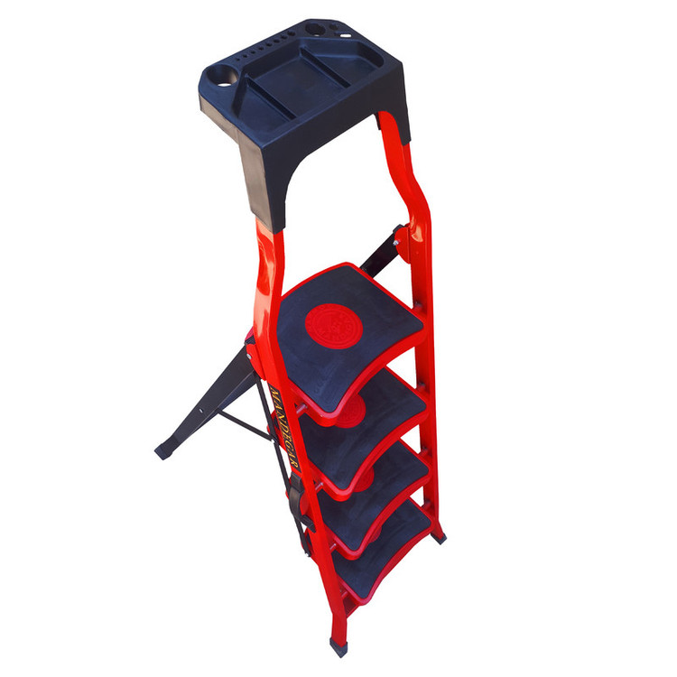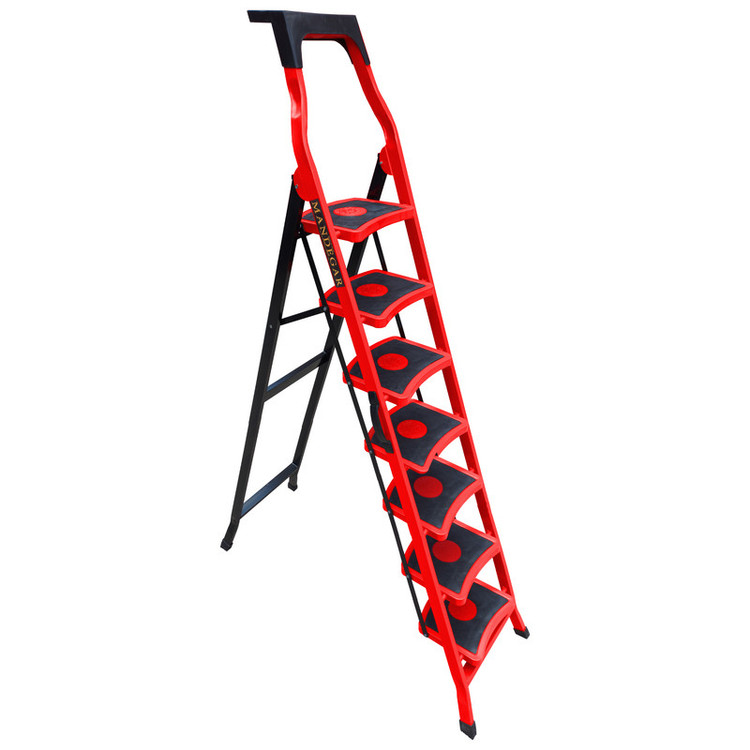نردبان سما نردبانی پله پهن است که بدنه آن از پروفیل های مستطیلی ساخته شده، به همین دلیل در مقایسه با محصولات مشابه از استحکام بیشتری برخوردار است. در قسمت بالای نردبان جایی برای قرار دادن ابزار تعبیه شده است. همچنین جهت حمل سریع و آسان، دستگیره ای بر روی بدنه نردبان پرچ شده. طراحی منحصر به فرد این نردبان، ظاهری شیک در کنار استحکام بالا را به مصرف کننده هدیه می دهد. بر روی پله بالایی قفل محافظ نردبان قرار دارد که باعث حفظ تعادل پله های نردبان هنگام استفاده از آن می شود. این نردبان جهت مصارف خانگی، اداری، خدماتی و فروشگاهی مناسب است. توجه بفرمایید این نردبان دارای 7 پله می باشد. که برای دسترسی به ارتفاع 375 سانتیمتر مورد نیاز است.به همین دلیل وزن آن سنگینتر است. اما برای مصارف خانگی 5 پله یا 4 پله کفایت است.