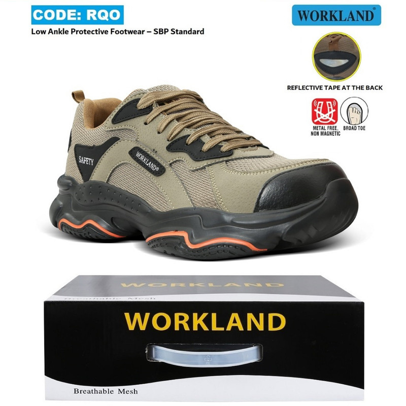 این مدل کفش متعلق به برند WORKLAND تولید شده در کشور چین می باشد .این کفش METALL FREE است و هیچگونه فلزی در ساخت ان استفاده نشده است و لذا می تواند جهت برق های فشار ضعیف بصورت عایق عمل کند .کفش در بخش رویه و زیره دارای کیفیت بسیار بالایی می باشد . طراحی آن بسیار اسپرت و ظریف بوده و اصلا در نگاه اول کفش ایمنی بنظر نمی رسد . جنس رویه آن ترکیبی از چرم اکشن ( چرم با روکش پلی اورتان ) و مش قابل شستشو می باشد . این ترکیب باعث می شو تا گردش هوای مناسبی در کفش ایجاد گردد . سرپنجه این کفش از جنس کامپوزیت است و برای راحتی سرپنج ها بصورت پهن طراحی شده است .. زیره کفش از جنس EVA و بسیار سبک و نرم و ارتجاعی می باشد که موجب می گردد زیره خاصیت آنتی شوک ( SHOCK ABSORPTION جاذب ضربه ) و ضد لغزش برا داشته باشد . وزن هر لنگه این کفش کمتر از 500 گرم می باشد .