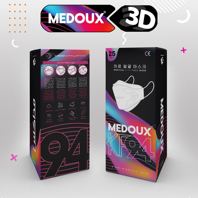 مداکس (Medoux) یکی از برندهای شناخته شده جهانی در زمینه تولید محصولات مراقبت فردی و ماسک تنفسی است. بزرگترین سبد محصولات تنفسی در جهان توسط این شرکت تحت لیسانس استرالیا در ایران تولید میگردد و تاکنون به 19 کشور جهان از 4 قاره صادرات داشته است. ماسک سه بعدی پلاس مداکس که به دلیل شکل ظاهری اش با نام ماسک سه بعدی نیز خوانده می شود یکی از ماسکهای حرفه ای در نوع خودش به شمار می رود. این ماسک نسبت به ماسکهای مشابه خودش در همین زمینه کیفیت بسیار بهتری دارد. تنها تفاوت این ماسک ظاهر زیبای آن نیست. بلکه لایه های حرفه ای تر باعث شده که این محصول بسیار بیشتر مورد توجه قرار داشته باشد. برای ساخت این ماسک به جای 3 لایه از 5 لایه استفاده شده است ( 2 لایه ملت بلون 25 گرم مرغوب و 3 لایه از جنس اسپان باندضخیم نرم و لطیف ضد حساسیت پوستی آنتی باکتریال و تنفسی ) .لایه های سطحی تر از جنس اسپان باند و لایه های میانی از جنس ملت بلون هستند. استفاده از دو لایه ملت بلون باعث شده کارایی فیلتراسیون ماسک های سه بعدی پلاس مداکس بیش از 98٪ شود. میزان فیلتراسیون ماسک مداکس به دلیل استفاده از ملت بلون وارداتی بسیار بالاتر از محصولات دیگر است.