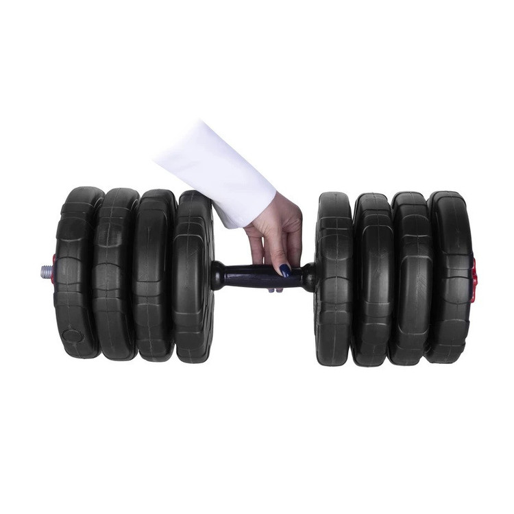 دمبل مدل Dvp 20-2500-one handle وزن 20 کیلوگرمی بسته یک عددی شامل یک دمبل 20 کیلویی است که به طور ویژه برای استفاده خانگی طراحی و ساخته شده است مهمترین ویژگی این محصول، ارگونومیک بودن و طراحی چشمنواز آن است؛ روکش وزنههای این دمبل از پلی اتیلن بوده که این کار علاوه بر زیبایی ، مانع آسیب دیدن وزنهها و آسیبرساندن آنها به محیط اطراف میشود ، دستههای این دمبل از جنس پلاستیک بوده و طراحی و مواد آن بهگونهای است که مانع آسیب رسیدن به کف دستها شود. دمبل متغیر 5 تا 20 کیلوگرم شامل 8 صفحه 2.5 کیلوگرمی بوده و در وزن های 5 و 10 و 15 و 20 کیلوگرم قابل استفاده است. یعنی با خرید این دمبل در عمل چهار دمبل در اختیار دارید؛ دمبل 5 کیلویی و 10 کیلویی و 15 کیلویی و دمبل 20 کیلویی. یکی از برتریهای این دمبل نسبت به نمونههای مشابه در بازار، جنس نانوکامپوزیت وزنههاست. این ماده مدرن و پیشرفته دارای مقاومتی بالاتر از چدن است اما مشکلات چدن مانند شکنندگی، زنگزدگی، آسیبرسانی و ... را ندارد. همین موضوع باعث شده که دمبلها گزینهای ایدهآل برای مصارف خانگی به طور خلاصه میتوان مزایای کلیدی این محصول را اینگونه عنوان کرد: - ظاهری بسیار زیبا و مدرن - تولید شده از مواد درجه یک و بادوام - امکان استفاده در چند وزن مختلف - امکان اضافه کردن وزنه دارد