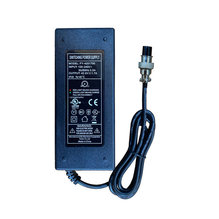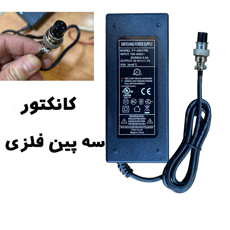 شارژر اسکوتر برقی دارای فیش سه کانکتور خروجه میباشد . خروجی این شارژر 42 ولت می باشد. شارژر خوب باعث افزایش طول عمر باتری خواهد شد. برای همین شارژر یکی از مهمترین لوازم اسکوتر برای افزایش طول عمر باتری میباشد. شارژر های اسکوتر دارای یک کابل سوکت دار فلزی مقاوم با یک شیار بر روی آن میباشد که برای اتصال شارژر به اسکوتر میبایست دقت نمایید تا بصورت صحیح در محل اتصال به اسکوتر قرار گیرد تا باعث خرابی سوکت شارژر یا سوکت اسکوتر نگردد.