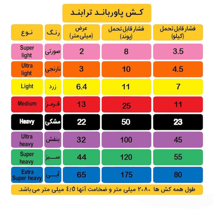 این کش در رنگ مشکی با ضخامت 22 میلیمتر مناسب برای رشته های کراس فیت و کلیستنیکس و تمرینات قدرتی میباشد.