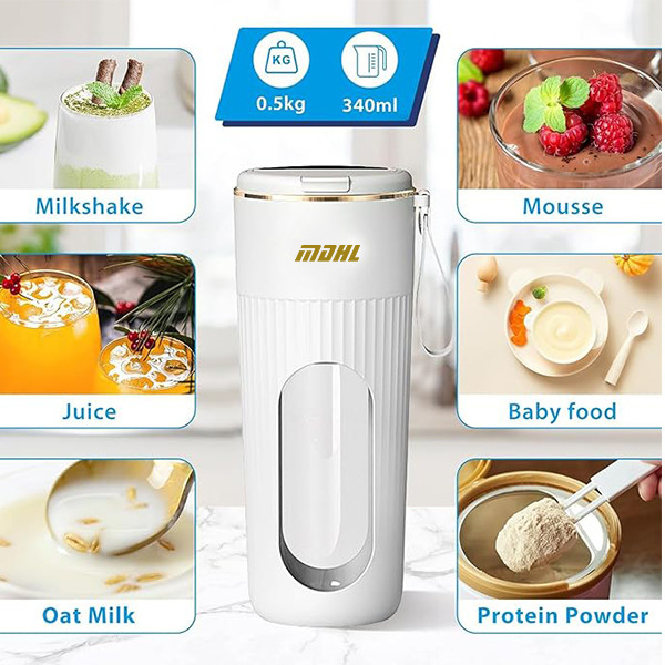 شیکر و اسموتیساز شارژی MDHL مدل AJ-01 یک گزینه ایدهآل برای افرادی است که به تغذیه سالم و نوشیدنیهای تازه در هر زمان و مکان اهمیت میدهند. این دستگاه با وزن 490 گرم و ابعاد 21×8.9×8.6 سانتیمتر طراحی شده تا بهراحتی قابل حمل باشد. موتور قدرتمند با سرعت 22000 دور در دقیقه و 14 تیغه استیل ضدزنگ، امکان خرد کردن میوهها و مغزیجات را فراهم میکند. ظرفیت 340 میلیلیتری آن برای تهیه یک وعده اسموتی یا شیک پروتئینی مناسب بوده و باتری 7.4 ولتی قابل شارژ از طریق پاوربانک، لپتاپ یا آداپتور، آزادی عمل بیشتری به شما میدهد. همچنین، این دستگاه با قفل ایمنی هوشمند و نمایشگر دیجیتالی برای نمایش میزان شارژ باقیمانده، ایمنی و کارایی بالایی را ارائه میدهد. با شیکر MDHL، در کمتر از 30 ثانیه یک نوشیدنی سالم و خوشمزه آماده کنید و از سبک زندگی سالم لذت ببرید!نحوه استفاده از آن هم بسیار ساده است. برای مثال، میوه دلخواه خود را داخل ظرف و محفظه مخلوط کن قرار داده، درب مخلوط کن را خوب ببندید، آن را برعکس کرده و با دوبار کلیک کردن دکمه مخصوص آن، دستگاه را روشن کنید، به این ترتیب میتوانید محتویات داخل ظرف را ترکیب و مخلوط کنید.نحوه استفاده از آن هم بسیار ساده است. برای مثال، میوه دلخواه خود را داخل ظرف و محفظه مخلوط کن قرار داده، درب مخلوط کن را خوب ببندید، آن را برعکس کرده و با دوبار کلیک کردن دکمه مخصوص آن، دستگاه را روشن کنید، به این ترتیب میتوانید محتویات داخل ظرف را ترکیب و مخلوط کنید.لطفا برای استفاده از این شیکر به راهنمایی ذکر شده روی محصول توجه نمایید