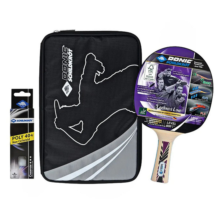 ست راکت پینگ پینگ دونیک شیلدکروت ارائه شده، حاوی 1 عدد راکت تنیس روی میز مدل لجند لاين 800، 1 عدد کیف راکت با کیفیت و 1 بسته توپ 3 عددی تنیس روی میز Schildkroet Champion است. این ست همه ی لوازمی را که برای یک بازی هیجان انگیز نیاز دارید، برای شما فراهم می کند.