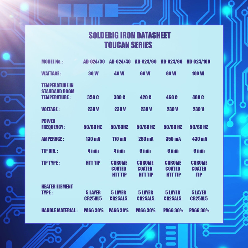 دارای فیوز اضافه جریان برق - نوک لحیم کاری هادی حرارت با روکش کروم - داغ شدن سریع