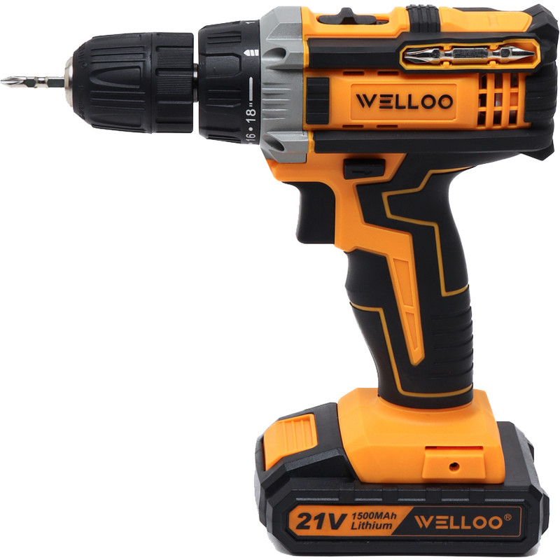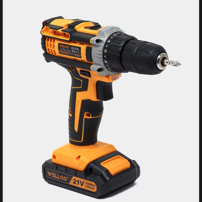 دریل شارژی چکشی ولو(WELLOO) مدل CLD50221 یک دریل 21 ولتی با باتری 1500 میلی آمپری لتیومی است. سوئیچ رو به جلو و معکوس این دریل به شما اجازه می دهد تا جهت مته را تغییر دهید که به شما در بستن پیچ ها یا دریل کردن کمک می کند. دریل شارژی ولو CLD50221 دارای کلاچ 20 حالته است و به شما در خالی نکردن پیچ ها و تنظیم گشتاور کمک می کند. دریل شارژی WELLOO دارای تنظیمات کلاچ متفاوتی است که به شما کمک می کند پیچ ها را براساس نیاز تا عمق مورد نظر هدایت کنید. برای رفع نیازهای خود برای باز و بسته کردن پیچ به یکی از آن ها سوئیچ کنید. همچنین یک LED را برای عملکرد مناسب در مناطق تاریک که روی آن کار می کنید، تعبیه شده است. نگران کنترل ابزار نباشید زیرا این دریل حجیم نیست و دارای یک دسته نرم است که برای گرفتن، مهار و کنترل بیشتر است. این دریل برای چوب و فولاد و دیگر سطوح سخت کاربرد دارد. با یک مته ۱۵ میلی متری برای چوب و ۱۰ میلی متری برای فولاد، کار را برای هر محل کار بهینه می کند. کار با دریل ممکن است طاقت فرسا به نظر برسد اما دریل شارژی ولو(WELLOO) شما را خسته نمی کند و محرک سرعت متغیر آن به تنظیم سرعت براساس نیاز کمک می کند. با دو حالت قدرتی و سرعتی ۰ - ۳۵۰ / ۰ - ۱۳۵۰ دور در دقیقه این دریل دوگانه عمل می کند که عملیات دقیقی را برای پروژه های سنگین و سبک فراهم می کند. از مهم ترین ویژگی های این دریل شارژی سرعت و گشتاور آن است که موتور دریل شارژی چکشی ولو(WELLOO) مدل CLD50221 می تواند ۲۹ نیوتن متر گشتاور تولید کند که سرعت چرخش قدرتمند پیچ ها و مته ها را تضمین می کند.